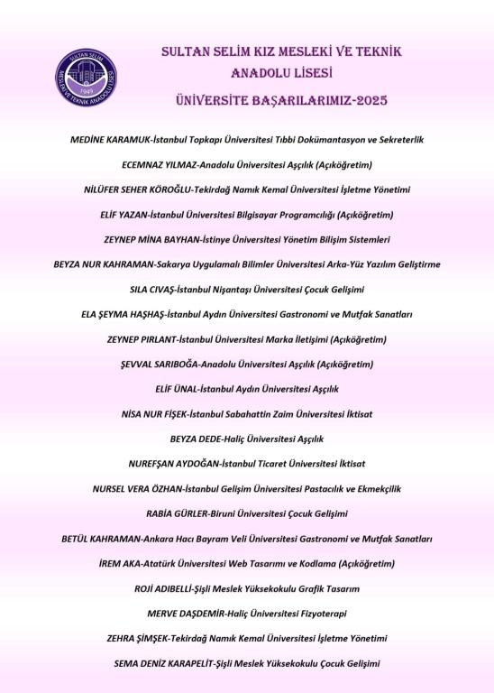 Tüm öğrencilerimizi tebrik eder başarılarının devamını dileriz.
